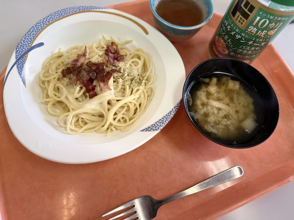 孤独の学食 #2 2024 12/09 食 孤独の学食 2024-12-09 月曜日のパスタは、カルボナーラ!ハーフもできます。ハーフは250円です。 食 孤独の学食 惣菜・パン 絲山秋子先生の書 関連記事 やさしさに包まれたうどん #52 2026-01-22 名古屋発祥“台湾まぜそば” #51 2026-01-16 2026年最初の一杯 #50 2026-01-09 いろいろ感じる「ユーリンチー」 #49 2025-12-22 学食メニュー対決 #48 2025-12-17 学食メニュー対決 #47 2025-12-11 チャーハン #46 2025-11-27 昼の相棒 #45 2025-10-30