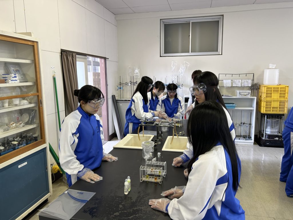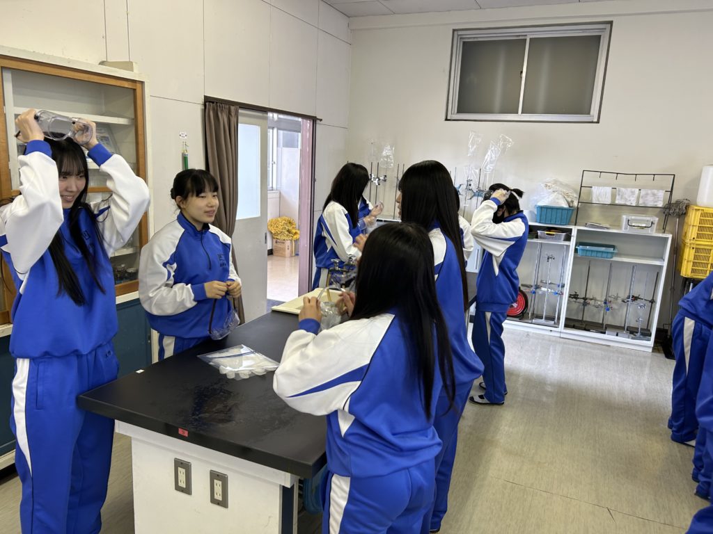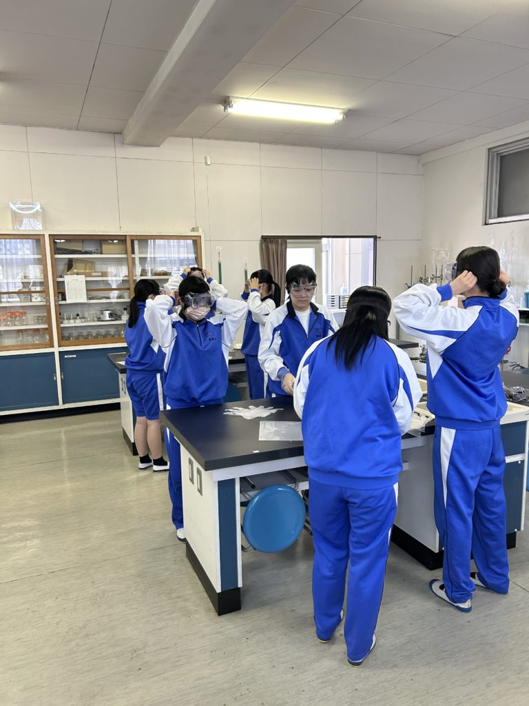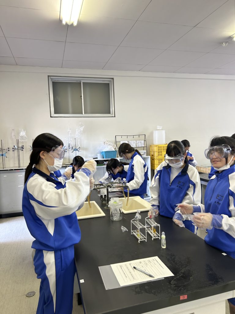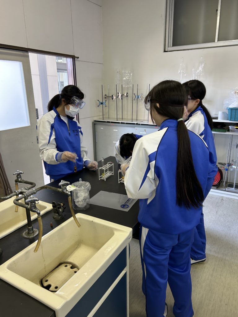 3年生の化学では、「化学平衡」の理解を深めるため、クロム酸カリウムと二クロム酸カリウムを用いた実験を行いました。