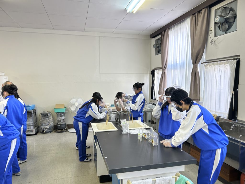 pHの変化によって溶液の色が変化する様子に、生徒たちは興味津々で取り組み、「色が戻った!」「どうしてこうなるの?」といった声が自然に上がっていました。