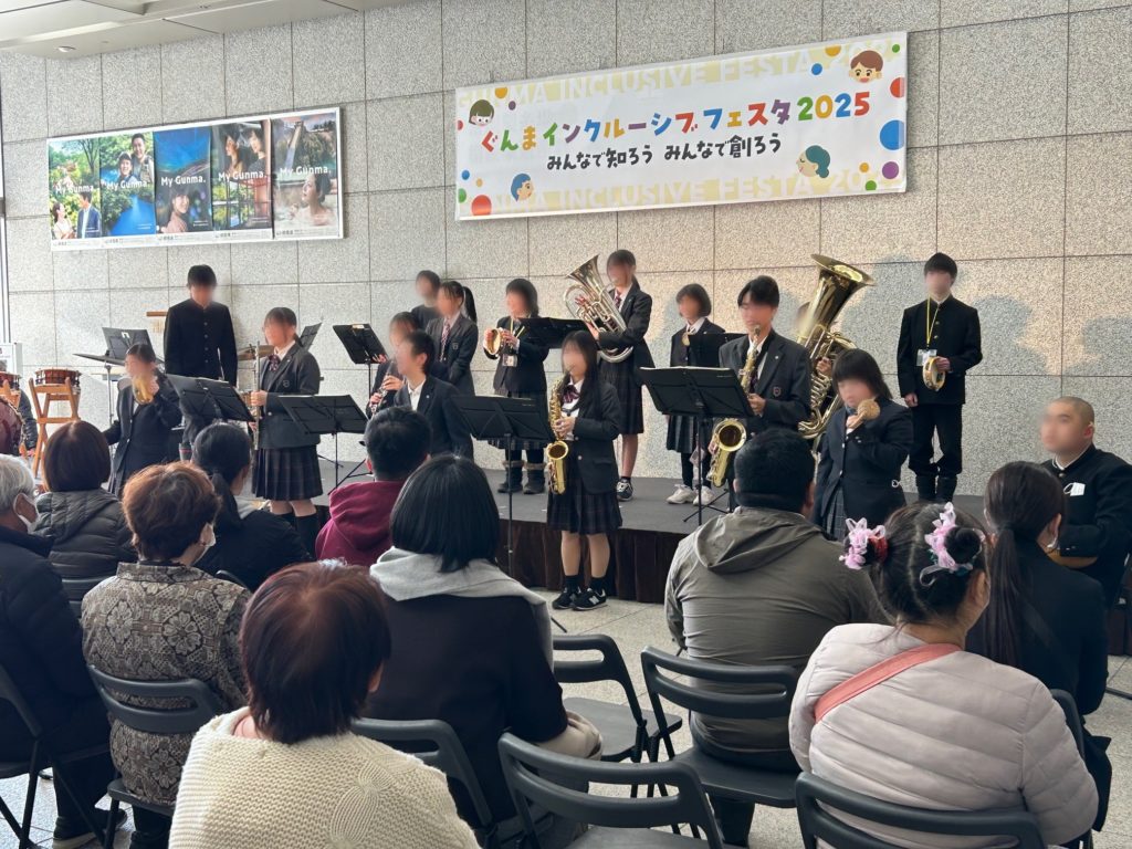 本校吹奏楽部が、12月5日(金)群馬県庁で開催された「ぐんまインクルーシブフェスタ2025」に出演し、沼田特別支援学校の生徒さんたちと共演しました。