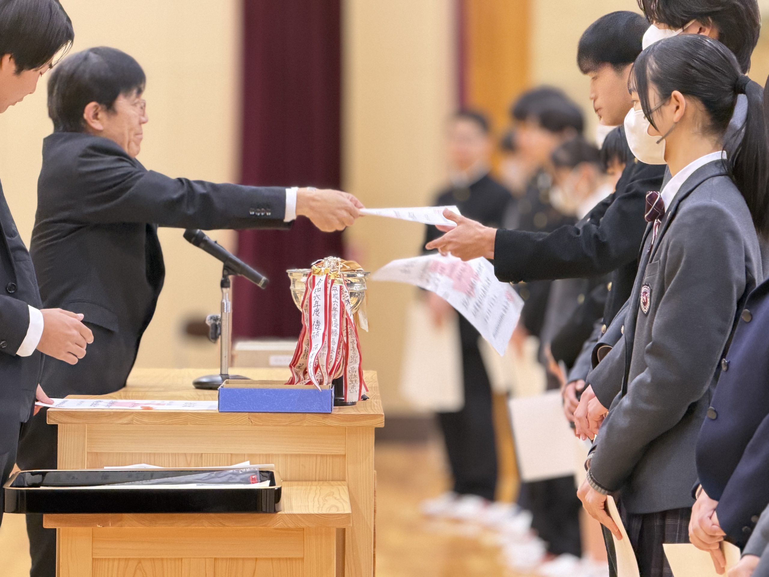 表彰伝達では、多くの生徒が表彰され、日頃の努力の成果が見られました。