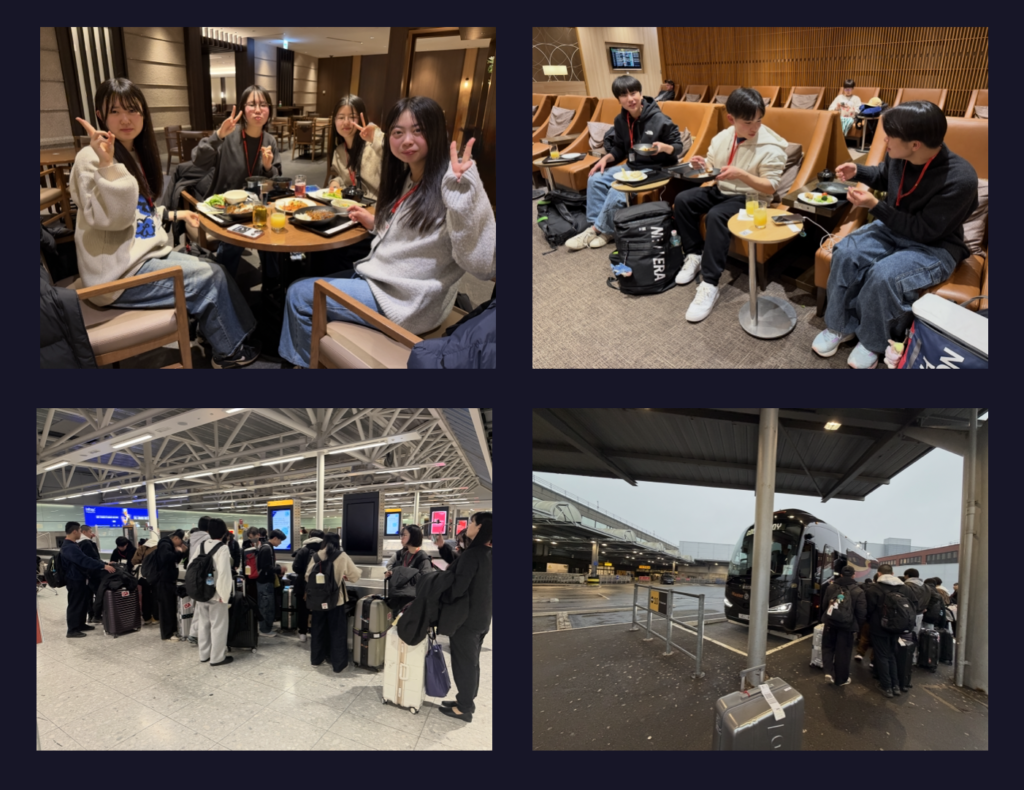 その後、バスで羽田空港へ向かい夕食を取り、深夜1時発のフライトでイギリスへ出発しました。約14時間の長旅となりましたが、無事にロンドン・ヒースロー空港に到着しました。