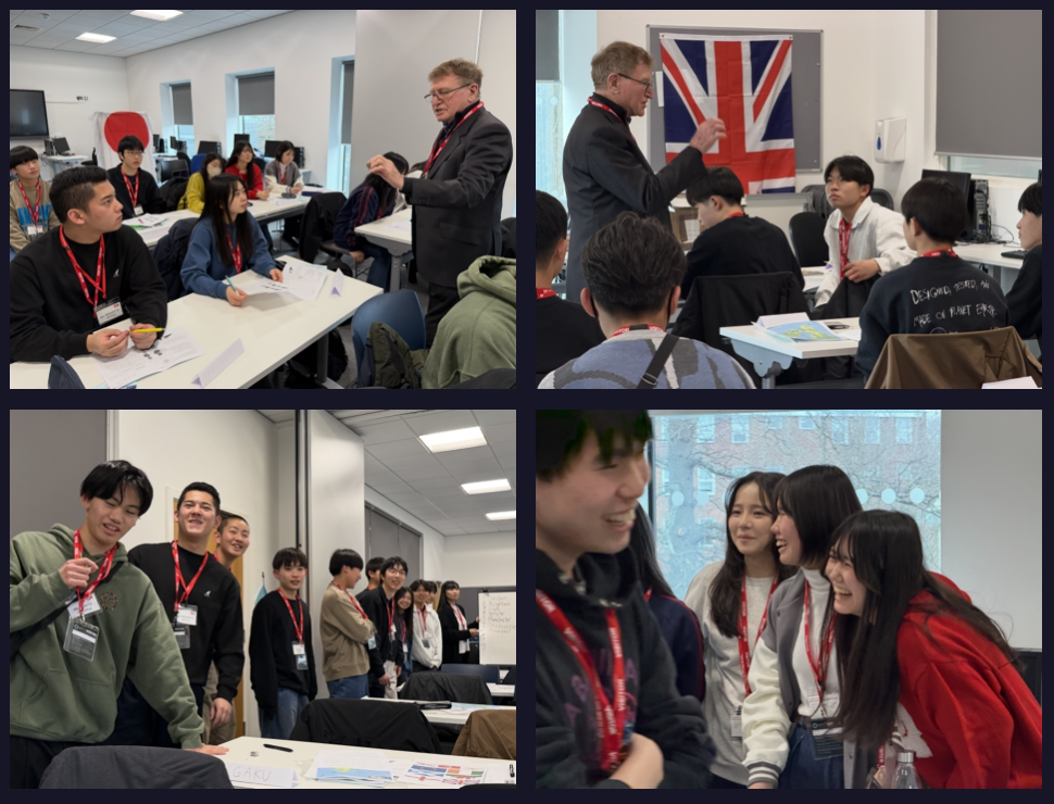 午前中はイギリスの歴史と文化に関する講義を受け、日本との制度や価値観の違いについて学びました。生徒たちは熱心にメモを取りながら耳を傾け、質疑応答では自ら手を挙げて質問する姿も見られました。これまで教科書で学んできた内容が、実際の社会や生活と結びついていることを実感している様子でした。
