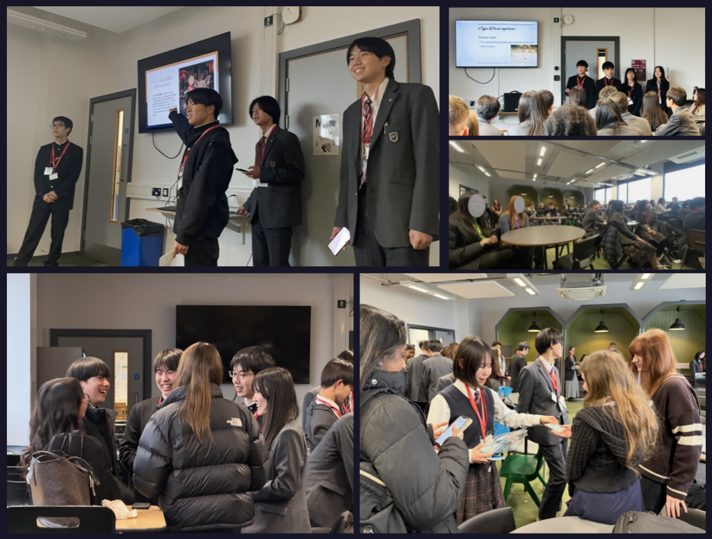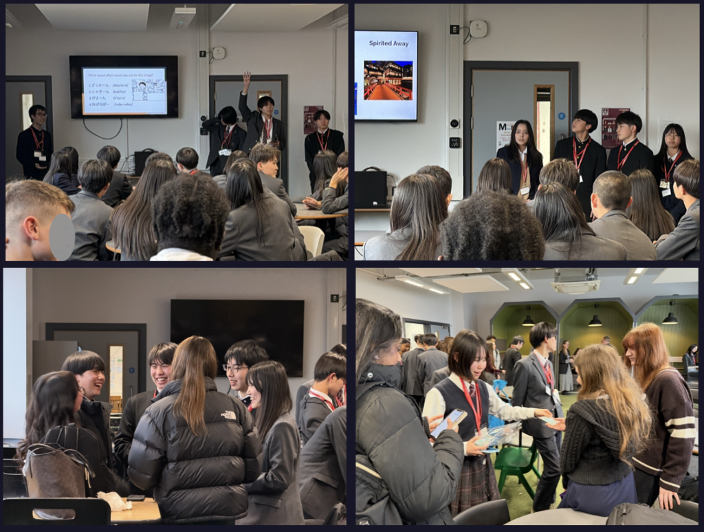 午後はプレゼンテーションに向けた最終調整を行いました。発表順や立ち位置を確認し、声の出し方やアイコンタクトを意識しながら練習を重ねました。本番では練習時よりも落ち着いた表情で前に立ち、聴衆の反応を感じ取りながら発表を進めていました。クイズを交えた場面では会場に笑いが起こり、双方が楽しみながら学び合う空間が生まれました。発表後には現地教員から励ましの言葉をいただき、生徒たちは達成感と安堵の表情を浮かべていました。