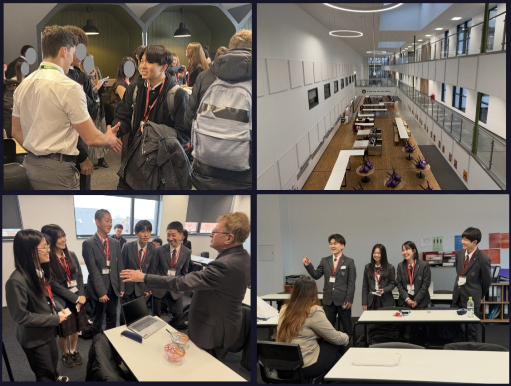 研修6日目は、The Broxbourne Schoolを訪問しました。ハートフォードシャー州にある地域でも評価の高い中高一貫の公立校で、校内は落ち着きのある雰囲気と生徒の主体性が感じられる空間でした。到着後はバディとなる現地生徒との対面からスタートしました。はじめは互いに少し距離を取りながらの様子でしたが、名前や趣味の話題をきっかけに徐々に会話が弾み、緊張がほぐれていく様子が見て取れました。