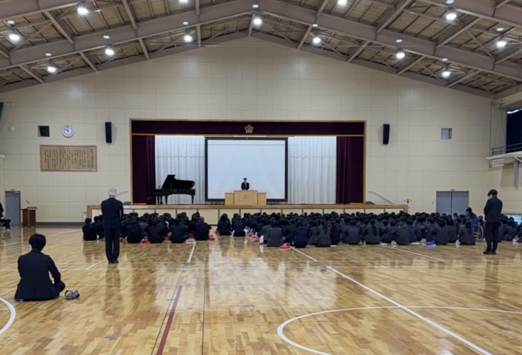 校長先生からは、この1年間の学校生活を振り返りながら、生徒一人ひとりが積み重ねてきた努力や成長についてのお話がありました。また、「読書習慣の大切さ」について触れられ、新書を1カ月に1冊読むことを目標にしてほしいとの呼びかけがありました。読書は知識を広げるだけでなく、物事を多角的に捉える力や、自分の考えを深める力を養うことにつながります。また、新書は社会の出来事や専門的な内容が分かりやすくまとめられており、視野を広げるきっかけとなることが期待されます。
